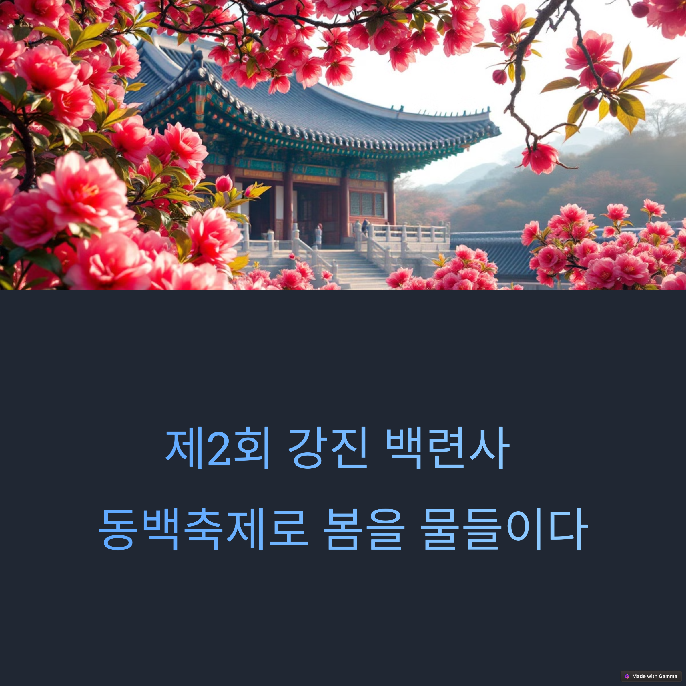 강진 백련사에서는 지난 14일부터 16일까지 제2회 동백축제가 성황리에 개최되었습니다. 이 축제는 아름다운 천연기념물 동백숲에서 진행되었으며, 7m 높이의 동백나무 1,500여 그루가 만개하여 장관을 이루었습니다. 붉은 동백꽃이 한 폭의 그림처럼 펼쳐지며, 방문객들은 자연의 신비를 직접 경험할 수 있었습니다.