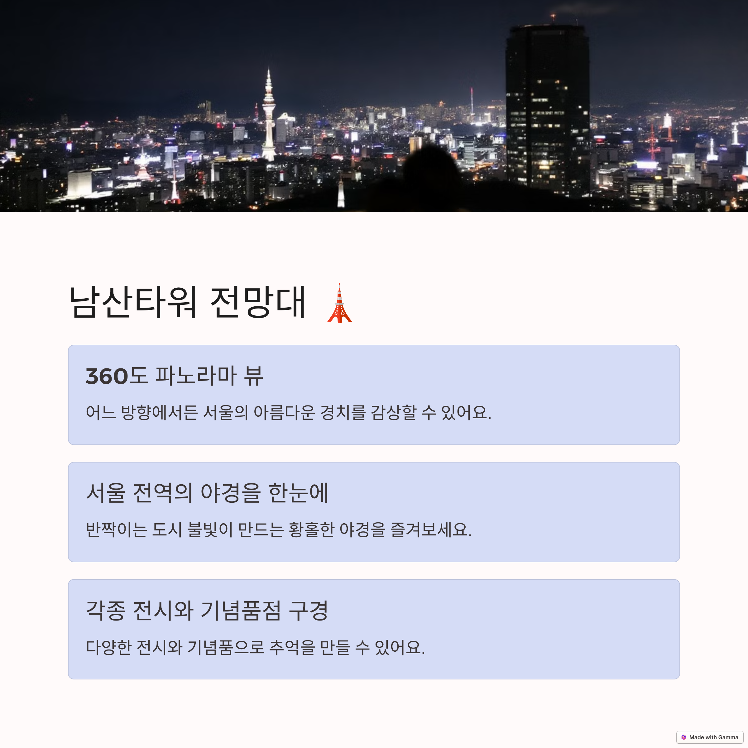 서울 도심의 멋진 풍경을 감상할 수 있는 전망대 | 로맨틱한 저녁과 프로포즈 명소 | 아름다운 일몰과 서울의 야경을 함께 즐기기 |