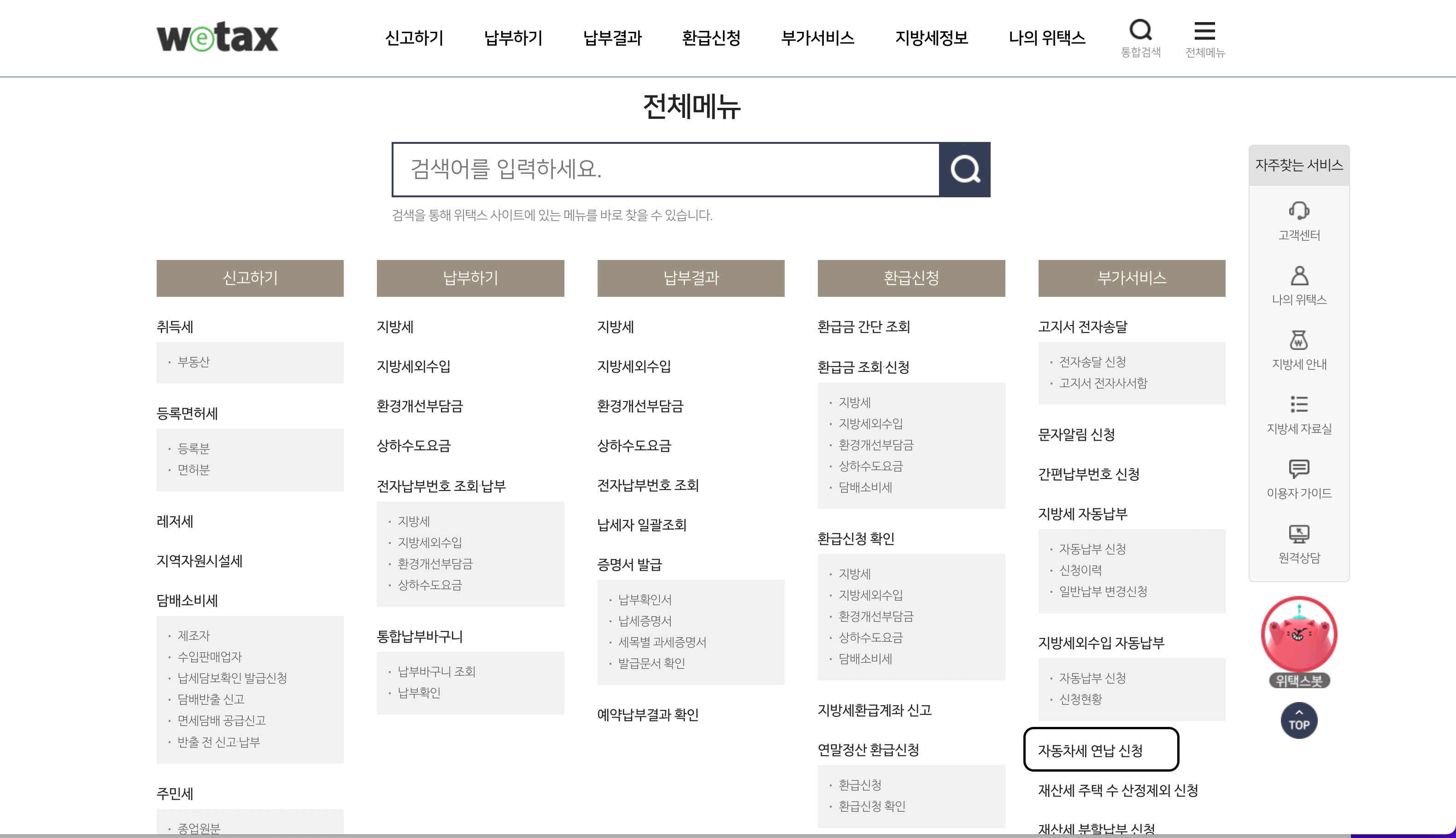 - 부가서비스 하단에 나타나는 메뉴 중 '자동차 세 연납신청'을 찾아 클릭