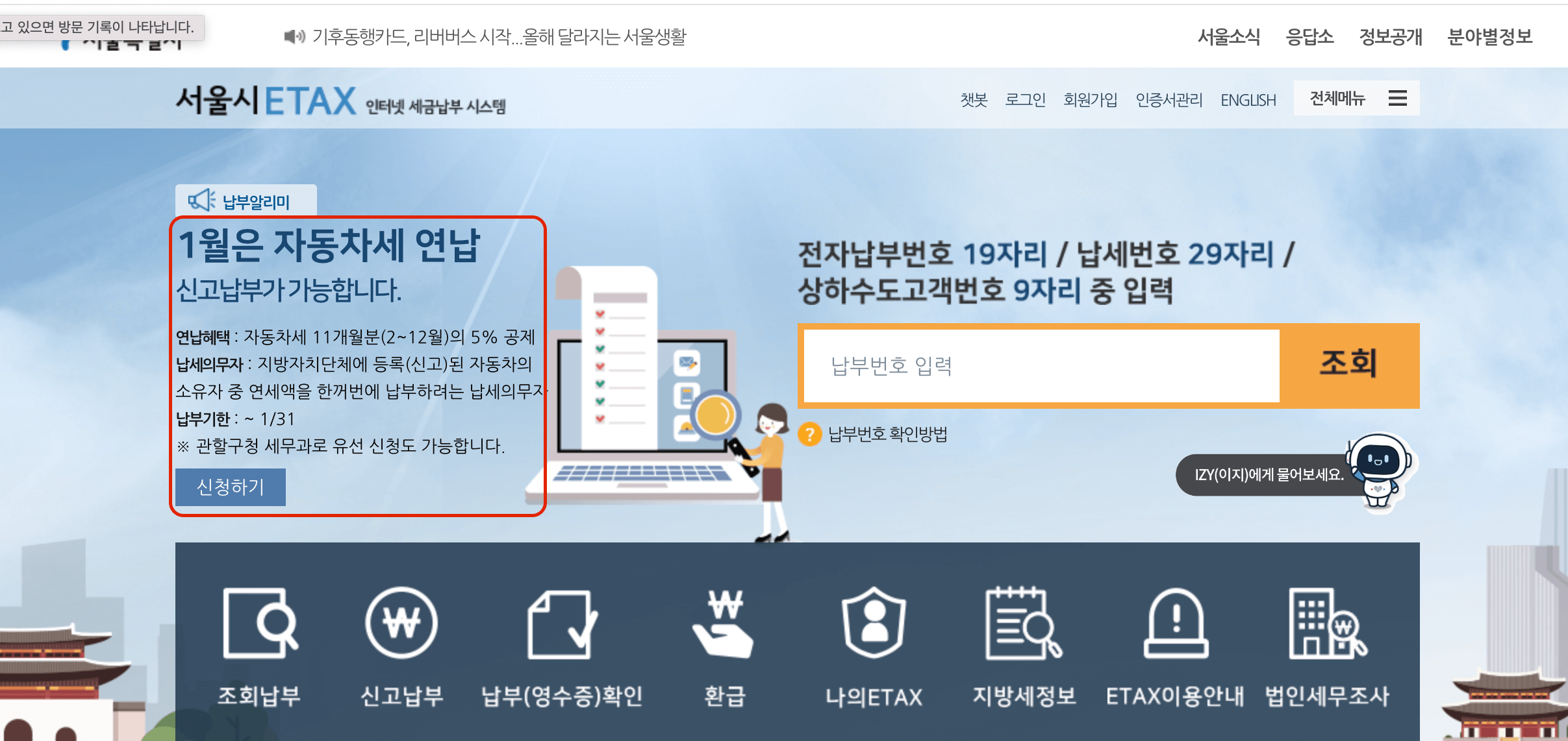 서울시 위택스 홈페이지에서 자동차세 연납을 하려면 아래와 같은 단계를 따릅니다: